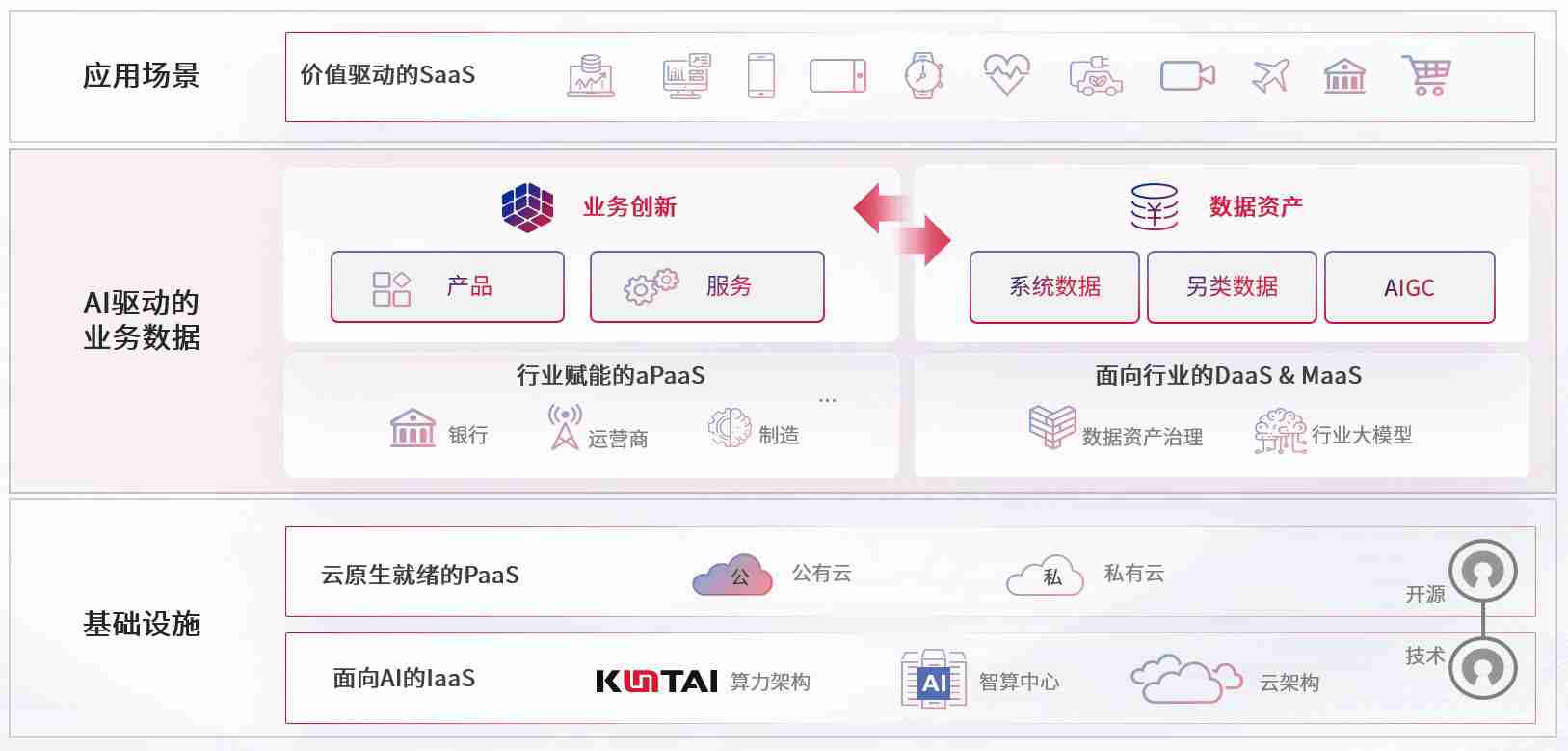 数字时代,,,围绕企业数字化转型的关键要素,,,,尊龙集团数码开创性的提出数云融合战略和技术体系框架,,,,着力在云原生、、数字原生、、、、AI原生和信创产业上架构产品和服务能力,,为处在不同数字化转型阶段的快消零售、、汽车、、、、金融、、医疗、、、、政企、、、教育、、运营商等行业客户提供泛在的敏捷IT能力和融合的数据驱动能力,,,构建跨界融合创新的数字业务场景和新业务模式,,,助力企业级客户建立面向未来的核心能力和竞争优势,,全面推动社会的数字化、、、智能化转型升级。。